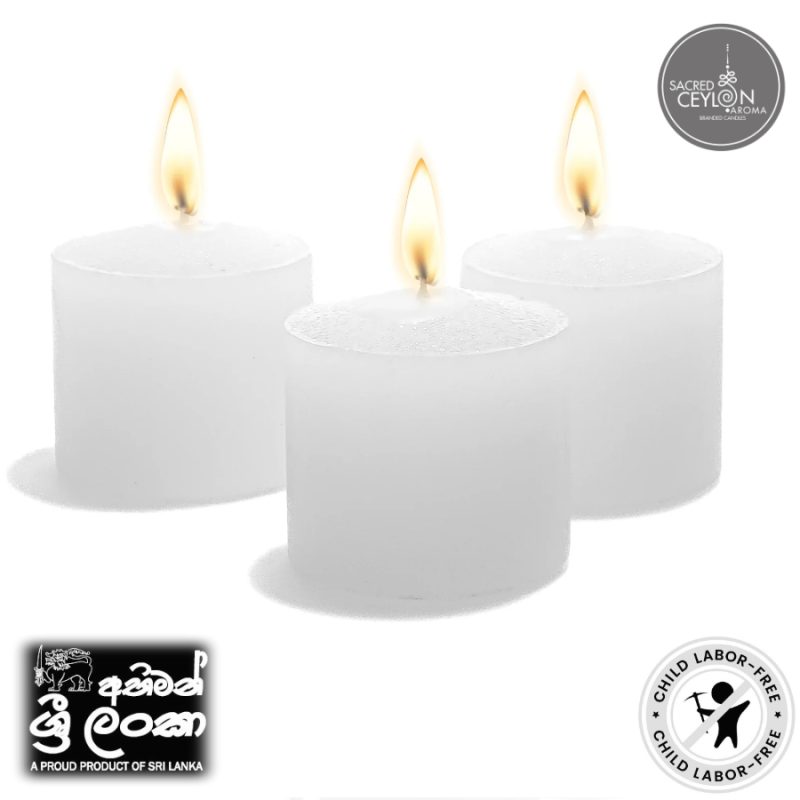 Sacred Ceylon – Tealight Candles White Unscented -13mmx38mm 2.5Hr to 3Hr (+/-) burn 25 Unit Pack