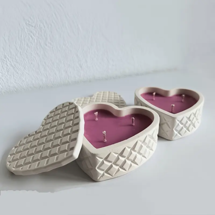 1 Unit Heart Shaped Concrete Box Candle Holder, Plaster Decorative Gift, for Home Decor