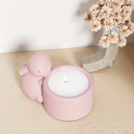 1 Unit DTOHO Silicone Candle Holder Mold – Cute Rabbit-Shaped Dual-Compartment Design for Candles, Resin, Plaster & Cement Casting