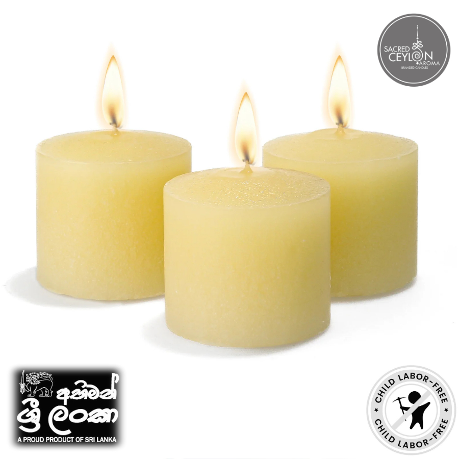 Sacred Ceylon Aroma Votive Candles are the perfect votive candle! The highest quality wax, 100% cotton wick, and clean burning combine to make this candle a winner! With the small size of this candle, we get asked all the time about how it burns 8-10 hours? It’s quite simple. This votive candle when placed in a votive candle holder and lit will begin to liquefy. As it does so the wax burns evenly all the way down to the bottom of the holder which is approximately 8-10 hours. When you are searching for a long burning candle for your home or event, Sacred Ceylon Votive Candles are for you!