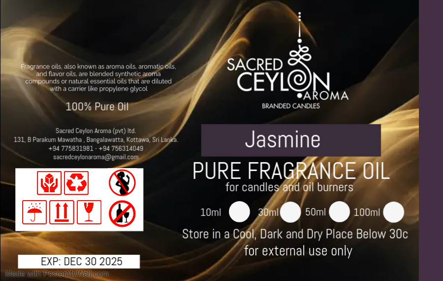 Jasmine Fragrance Oil – For Candle making and oil burner use 100ml