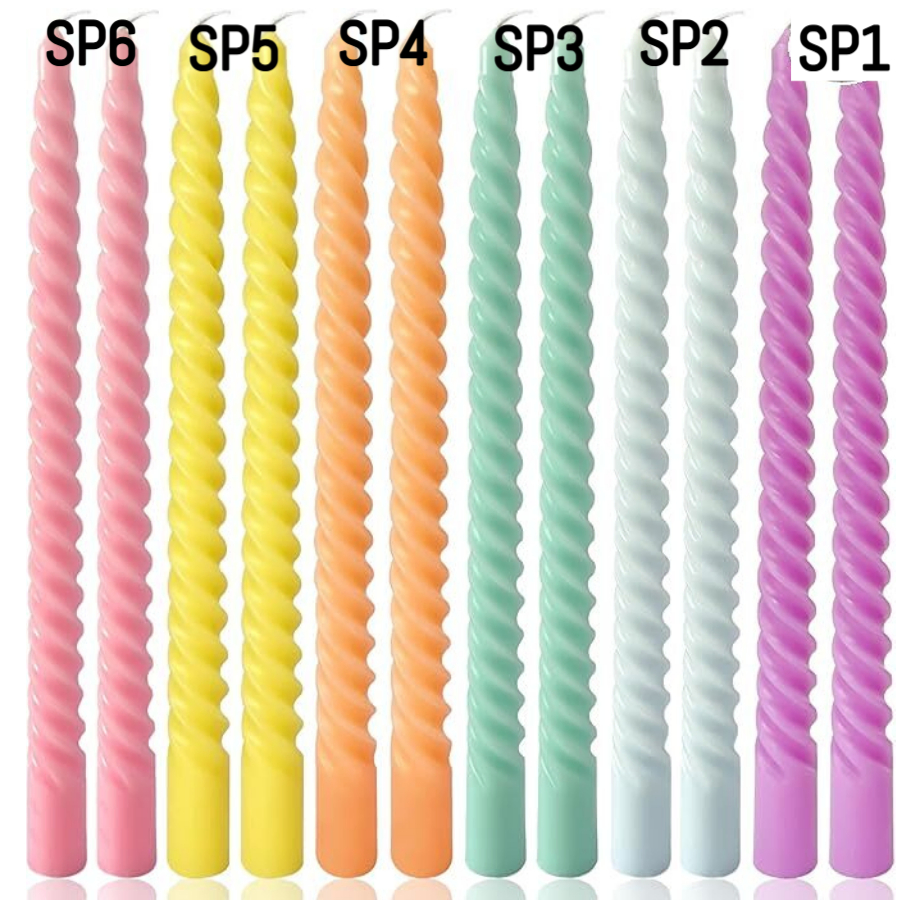 Spiral Taper Candle 12″ (Pack of 6 Candles) (ඉටිපන්දම් 6 ක ඇසුරුමක්) SP1- SP6 Select Color – වර්ණය තෝරන්න