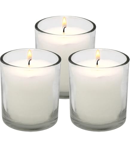 Votive Candles unscented 2″ W- 2″ H White candle with glass holder Set of 12 – (glass and candle)